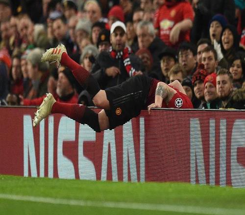 2019年,前曼联球员迪马利亚随巴黎圣日耳曼重返老特拉福德时,被阿什利-扬撞出场外,直接摔进广告牌。