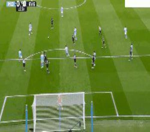 24' 曼城获得角球,哈兰德争顶,埃弗顿防守球员顶到球,球击中横梁弹出。