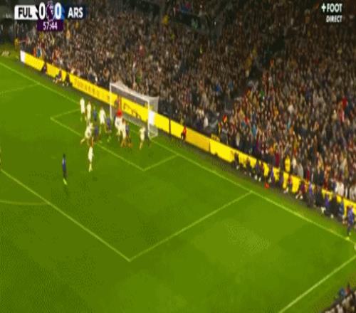 第36分钟,萨卡右路直塞,哲凯赖什跟上半单刀劲射,被莱诺飞身扑出,特罗萨德头球补射软弱无力被没收。紧接着萨卡再次下底传中,卡拉菲奥里禁区内迎球凌空扫射,稍稍高出横梁。