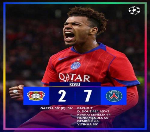 勒沃库森2-7巴黎圣日耳曼