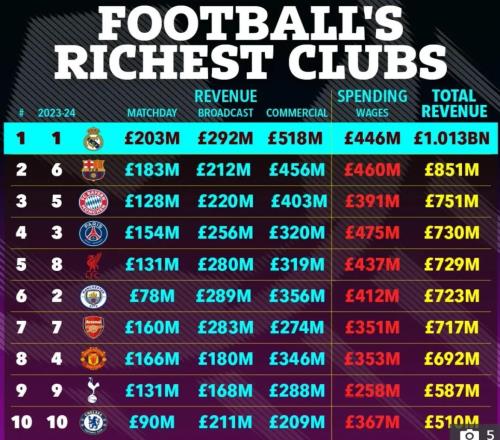 最新德勤足坛财富榜已经发布,皇萨仁排在前三,曼联跌至第八,利物浦升至第五名,英超俱乐部在前三十名占据了半壁江山,足球金融专家马奎尔进一步分析了这份最新榜单,内容较长,本文为第